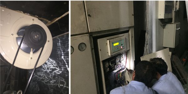 開機(jī)后,用鉗形電流表測量風(fēng)機(jī)電流,顯示運(yùn)行電流為7.6A,風(fēng)機(jī)正常運(yùn)行。將外蓋關(guān)上,周邊衛(wèi)生打掃干凈,一切恢復(fù)原樣,此次風(fēng)機(jī)更換才順利完成,交由客戶驗(yàn)收。