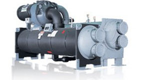 ◆離心式冷水機組采用兩組后傾式全封閉鋁合金葉輪的制冷壓縮機。